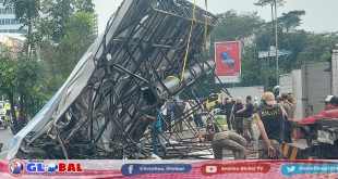Kota Bandung, analisaglobal.com — Hujan deras yang disertai angin kencang melanda wilayah Kota Bandung pada siang hingga sore hari, mengakibatkan sebuah papan reklame di kawasan perempatan Buah Batu roboh. Sabtu (28/03/2026). Peristiwa tersebut terjadi saat intensitas hujan cukup tinggi dan angin bertiup kencang, sehingga diduga menjadi penyebab utama ambruknya konstruksi …
