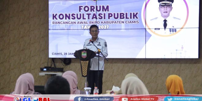 Kabupaten Ciamis, analisaglobal.com — Pemerintah Kabupaten Ciamis menggelar Forum Konsultasi Publik (FKP) Rancangan Awal Rencana Kerja Pemerintah Daerah (RKPD) Kabupaten Ciamis Tahun 2027, Selasa (27/1/2026), bertempat di Aula Adipati Angganaya Bapperida Kabupaten Ciamis. Kegiatan ini dilaksanakan secara hybrid sebagai bagian dari tahapan perencanaan pembangunan daerah.