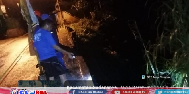 Kabupaten Ciamis, analisaglobal.com — Hujan deras disertai angin kencang yang melanda wilayah Kecamatan Sadananya, Kabupaten Ciamis, Selasa (10/3/2026) sekitar pukul 16.00 WIB, menyebabkan terjadinya longsor pada tembok penahan tanah (TPT) di jalan kabupaten menuju kawasan wisata Cadas Ngampar, Desa Gunungsari.