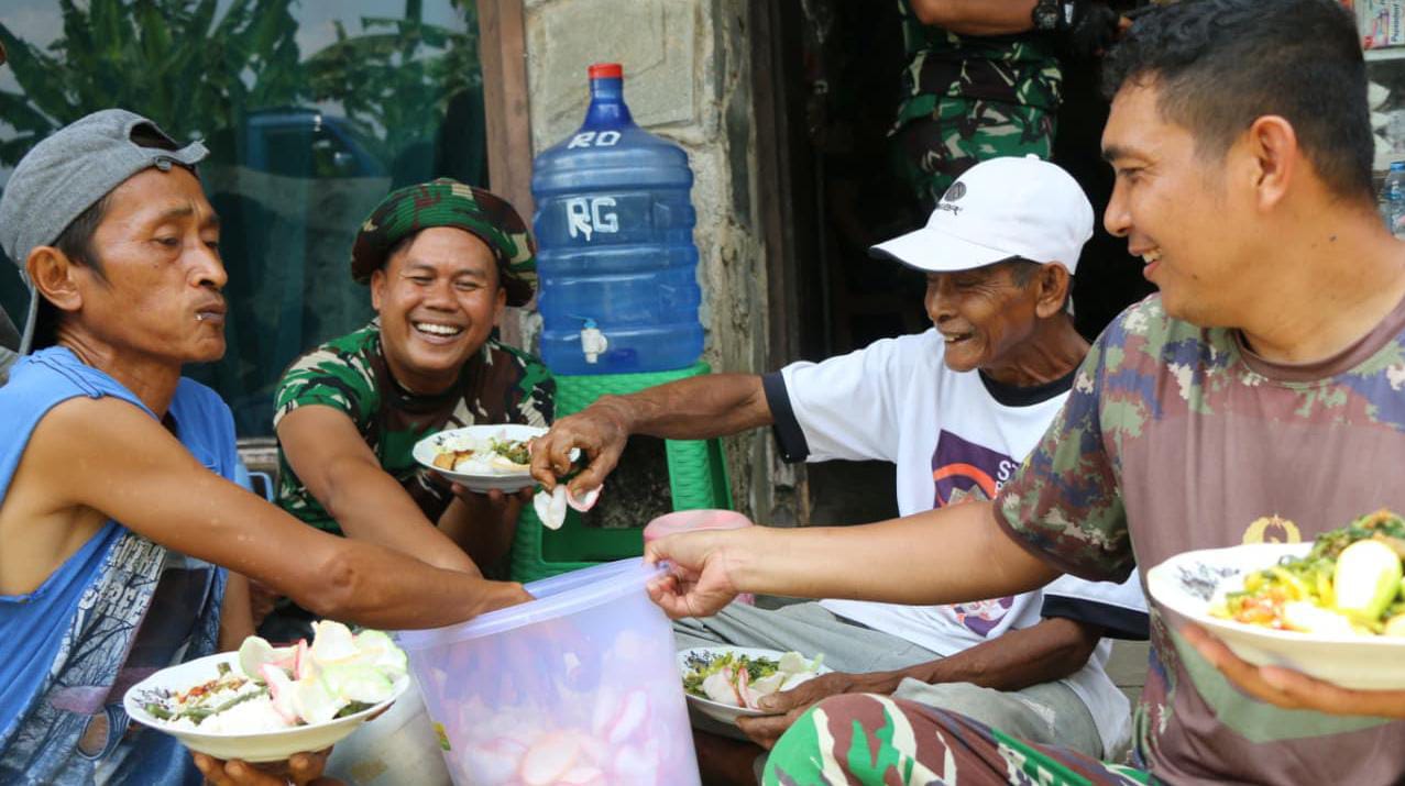 Kegiatan makan bersama tersebut bukan sekadar waktu istirahat, tetapi menjadi wujud nyata kedekatan dan kemanunggalan TNI dengan rakyat. Dalam suasana penuh kehangatan, para anggota Satgas TMMD dan warga saling berbagi cerita serta canda tawa, menciptakan nuansa kekeluargaan yang akrab dan penuh makna.
