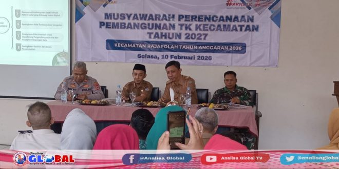 Kabupaten Tasikmalaya, analisaglobal.com – Musyawarah Perencanaan Pembangunan (Musrenbang) tingkat Kecamatan Rajapolah Tahun Anggaran 2027 digelar di Aula Kantor Kecamatan Rajapolah, Selasa (10/2/2026). Kegiatan ini menjadi forum strategis dalam menyusun arah pembangunan daerah yang lebih terarah, partisipatif, dan akuntabel.