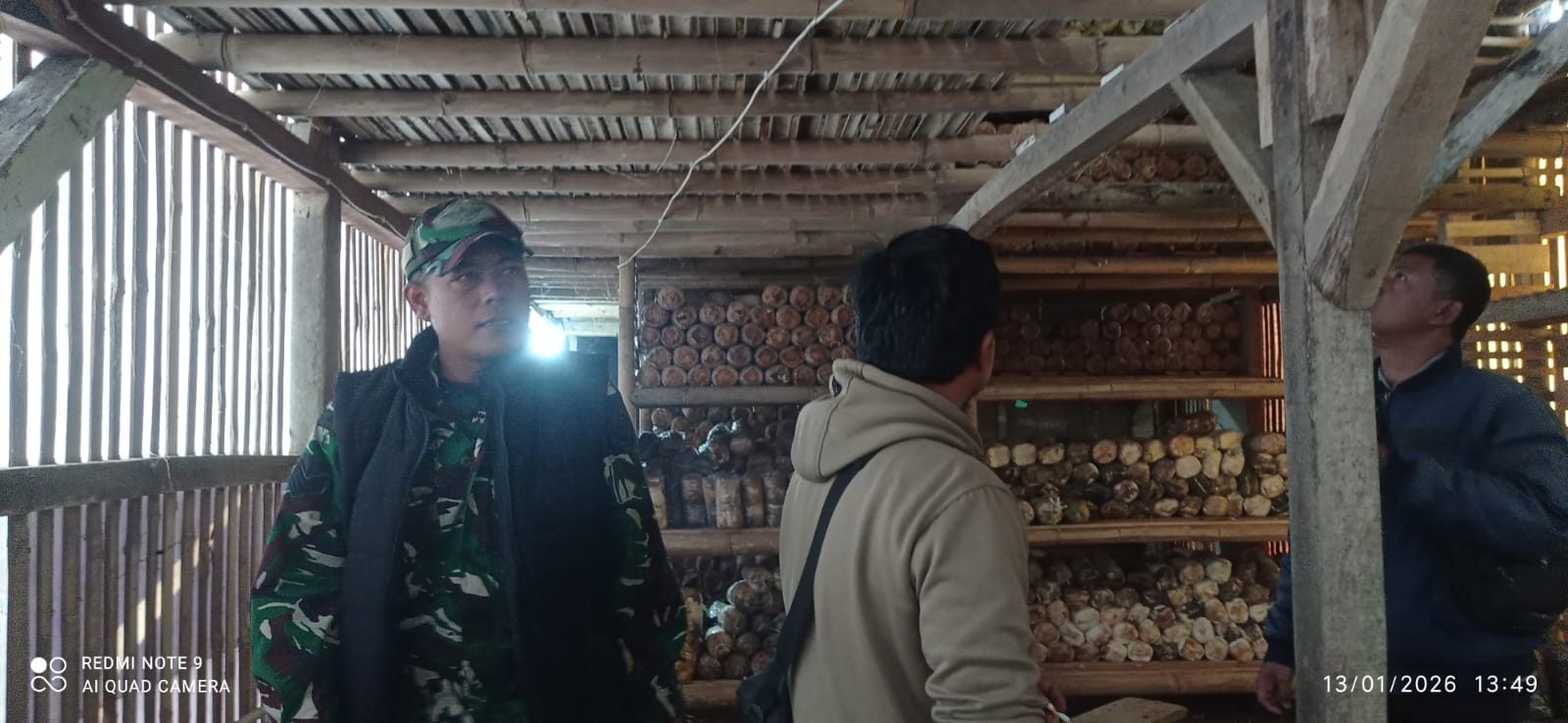 Kepala BPP Kecamatan Sukahening Imam Munandar, beserta Babinsa Desa Banyurasa Serka Agus Hamdani pun mengunjungi langsung ke pihak kelompok Pemuda Tani Sanding untuk melihat langsung cara pengolahan budidaya jamur tiram.